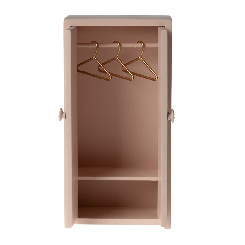 A small wooden cabinet to help your Mice Family store all their little accessories. The cabinet comes with 3 golden hangers. Measures 16cm (H) x 7cm (W).