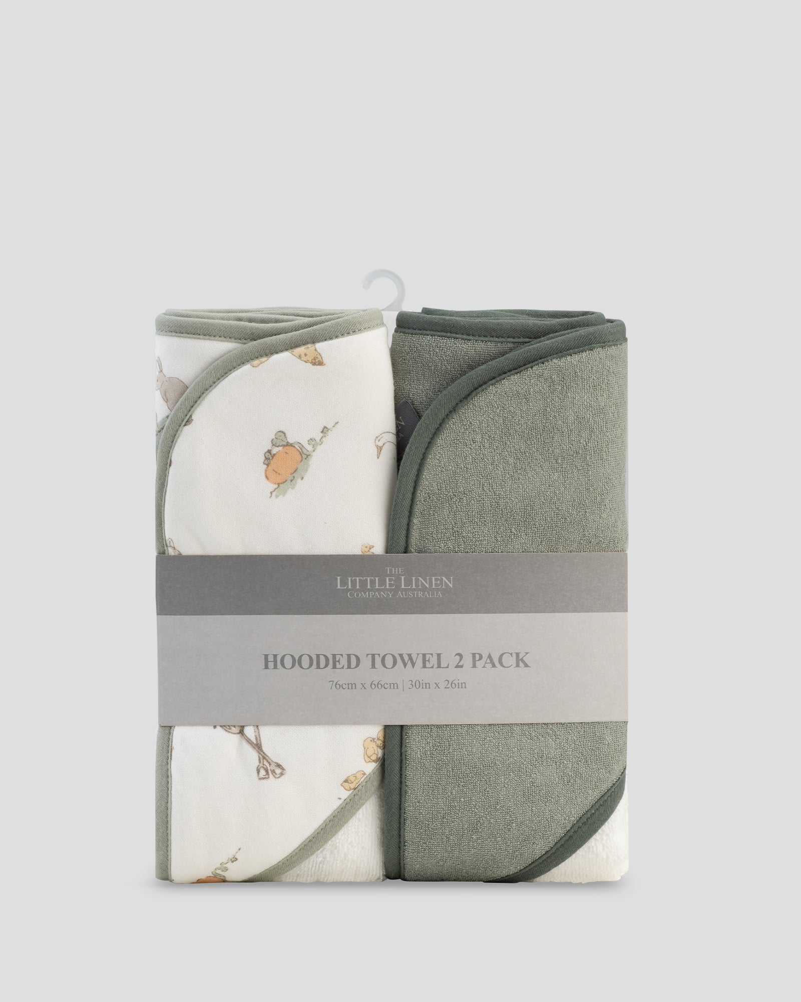 The Little Linen Company’s baby hooded towels have been keeping little heads warm and little bodies dry after bath time for 50 years. Our generously sized, knitted terry baby hooded towels, coordinating 2 packs, are super-snuggly and match back host of other The Little Linen Company baby essential items that are also popular in Australia. Size 76cm x 66cm