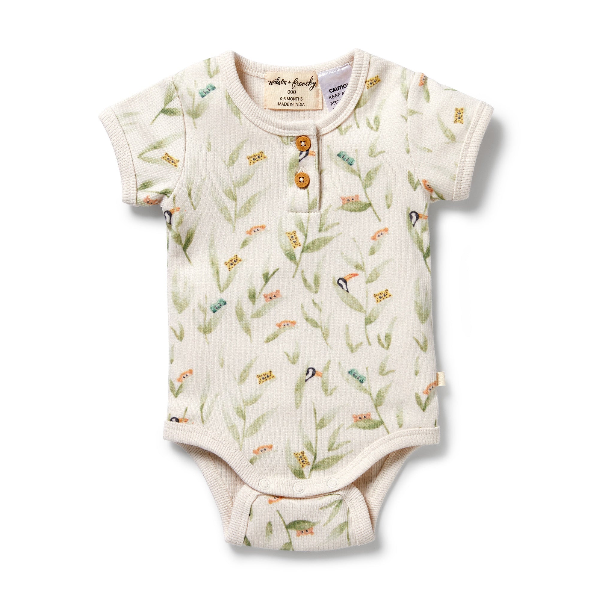 Made with GOTS certified organic cotton, this short sleeve rib bodysuit is soft and comfortable on your baby's skin. The snap crotch allows you to easily change your baby's nappy. Fabric composition: 95% organic cotton, 5% elastane