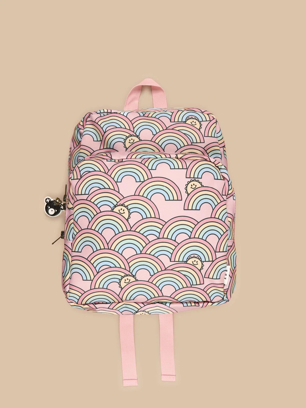 Your little one will be zooming around with this amazing Sunrise Backpack! Padded back and adjustable shoulder straps make this every day essential super comfortable and durable. Plenty of room for all of your adventures! Features the cutest Super Dino print, Huxbear hanging keychain and front zip pocket.